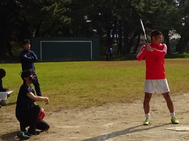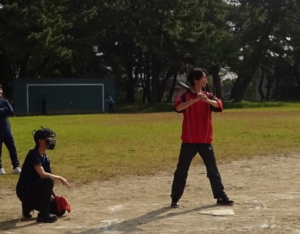 しかし,大会中に二度の悲劇が起こりました.一度目は葉石さんに起こりました.予選の2戦目,葉石さんの打球は大きく伸び皆がホームランを確信したとき,走り出した葉石さんが急に足を引きずり出しました.なんと肉離れが再発したのです.葉石さんのポジションに田崎君が,空いてしまったポジションに松尾さんと近藤さんが交互に入ることで何とか試合を続行することができました.