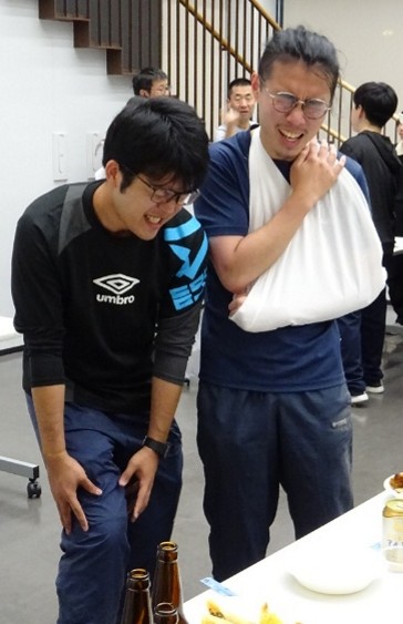 二度目は私,髙橋に起こりました.最終戦である3位決定戦,私はセカンドを担当していたのですが,あまりに不甲斐なく,見かねた𠮷川さんがポジションの交代を提案されました.交代した直後,捕球する際に体勢を崩し左肩から落下.鎖骨を折る重傷を負ってしまいました.日ごろから体を動かしていなかったツケが回りました…